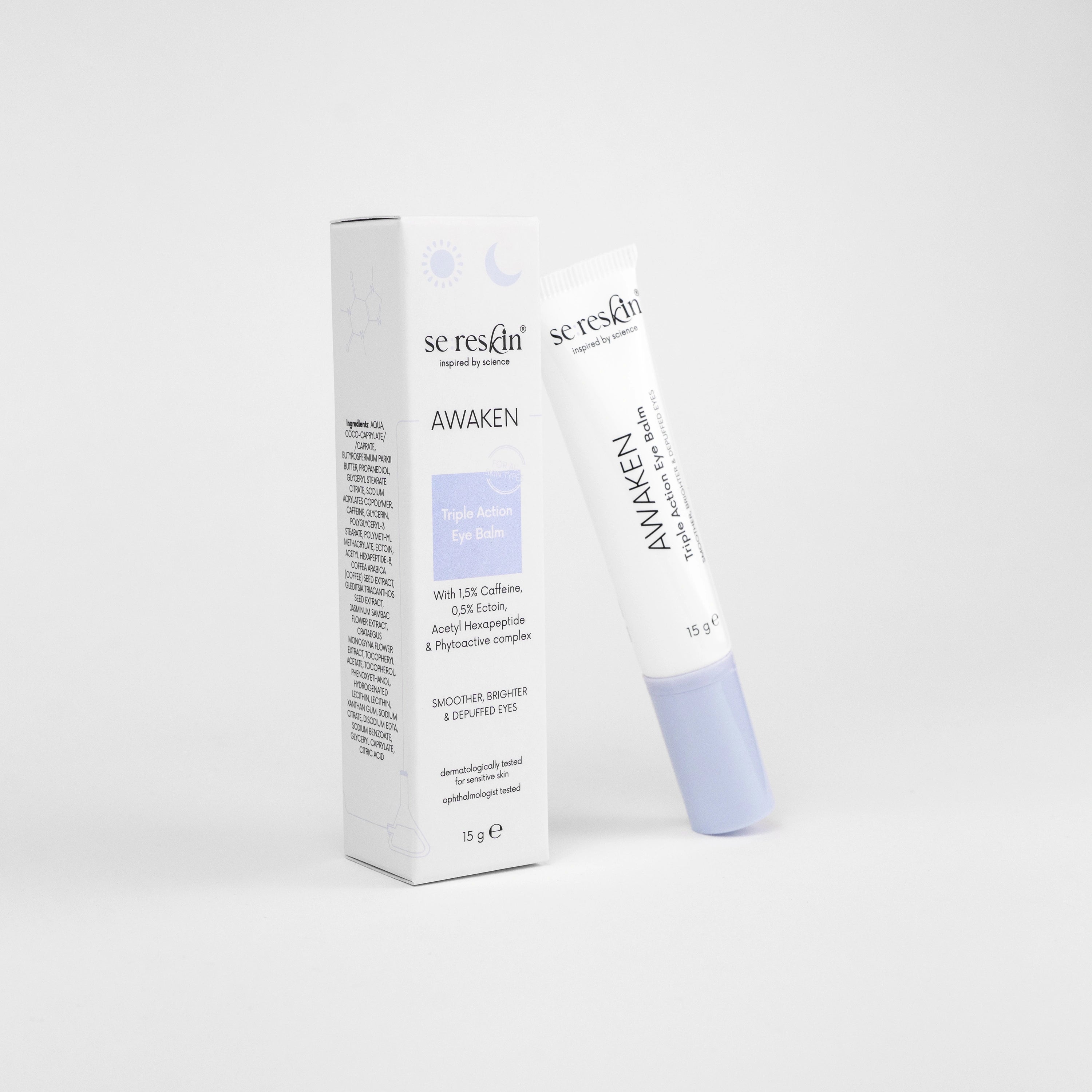 Extracte botanice cunoscute pentru contribuția lor la reducerea vizibilă a aspectului cearcănelor și la îmbunătățirea fermității pielii din zona ochilor. Ajută la revitalizarea și iluminarea aspectului pielii, pentru un contur ocular mai neted și mai odihnit.